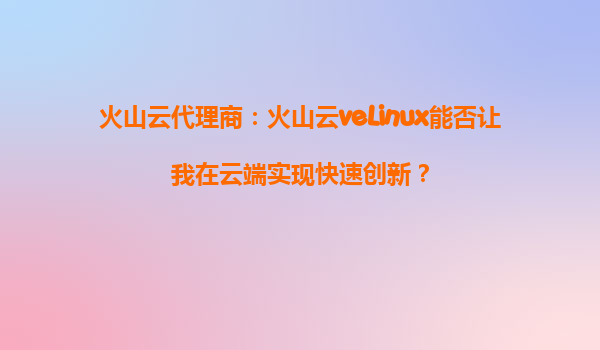 2025-09-30火山云代理商:火山云veLinux能否讓我在云端實(shí)現(xiàn)快速創(chuàng)新? 引言 在數(shù)字化轉(zhuǎn)型的浪潮中,云計(jì)算已成為企業(yè)快速創(chuàng)新的核心驅(qū)動(dòng)力。火山引擎作為字節(jié)跳動(dòng)旗下的云服務(wù)平臺(tái),憑借其強(qiáng)大...