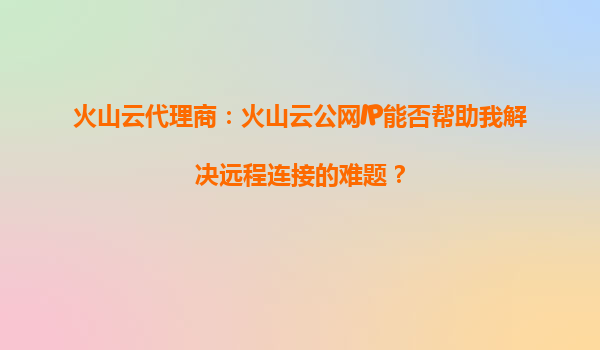 4008-020-360 火山云代理商:火山云公網(wǎng)IP如何解決遠(yuǎn)程連接難題? 一、遠(yuǎn)程連接的常見(jiàn)挑戰(zhàn) 在數(shù)字化轉(zhuǎn)型的浪潮中,遠(yuǎn)程辦公、跨地域協(xié)作已成為企業(yè)常態(tài)。然而,許多企業(yè)在搭建遠(yuǎn)程連接...