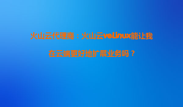 2025-09-27火山云veLinux:云端擴(kuò)展業(yè)務(wù)的智能之選 什么是火山云veLinux? 火山云veLinux是火山引擎推出的高性能云服務(wù)器操作系統(tǒng),專為云計(jì)算環(huán)境優(yōu)化設(shè)計(jì)。作為火山云代理商的明星產(chǎn)品,它基于穩(wěn)定的Linux...
