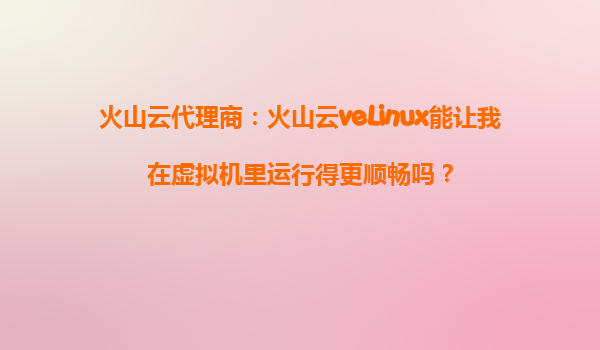 2025-09-26火山云代理商:使用火山云veLinux是否會提升系統(tǒng)啟動(dòng)速度? 一、火山云veLinux的核心優(yōu)勢 火山云veLinux是字節(jié)跳動(dòng)旗下火山引擎基于開源Linux系統(tǒng)深度優(yōu)化的企業(yè)級操作系統(tǒng),專為云計(jì)算場景設(shè)...