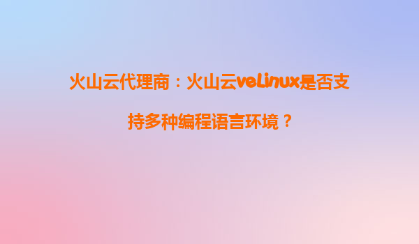 2025-09-25火山云代理商:火山云veLinux是否支持多種編程語言環(huán)境? 一、火山云veLinux簡介 火山云veLinux是火山引擎(VolcanoEngine)推出的一款高性能、高穩(wěn)定性的云服務(wù)器操作系統(tǒng),專為云計算環(huán)境優(yōu)化...