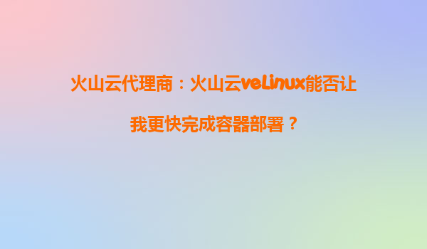 2025-09-25火山云代理商:如何借助火山云veLinux提升應(yīng)用交付速度? 引言:數(shù)字化轉(zhuǎn)型中的效率挑戰(zhàn) 在當(dāng)今快速發(fā)展的數(shù)字化時代,企業(yè)應(yīng)用交付速度直接關(guān)系到業(yè)務(wù)競爭力。...