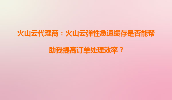 2025-09-23火山云代理商:火山云彈性急速緩存如何助力訂單處理效率提升 一、訂單處理效率的痛點與緩存技術的價值 在現代電商、金融或游戲行業中,訂單處理的實時性與穩定性直接影響用戶體驗和企業收益。傳統數據...