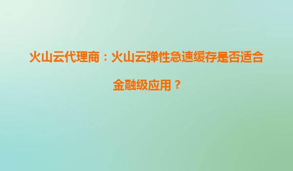 2025-09-20火山云代理商:火山云彈性急速緩存是否適合金融級應用? 金融級應用的嚴苛需求 金融行業對IT基礎設施的要求極為嚴格,尤其在實時交易、風險控制和數據一致性等核心場景中,系統需要滿足...