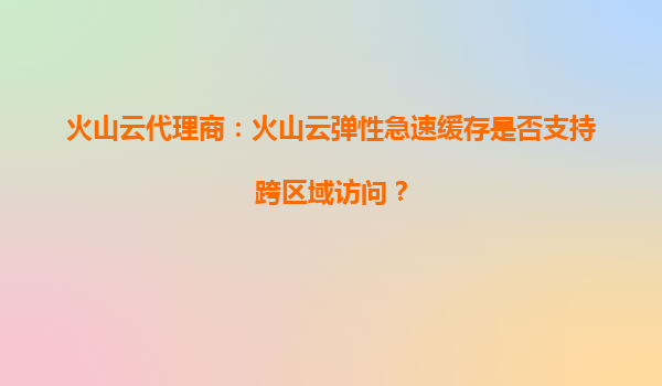 2025-09-19火山云代理商:火山云彈性急速緩存是否支持跨區域訪問? 一、火山云彈性急速緩存的核心優勢 火山引擎作為字節跳動旗下的云計算服務品牌,其彈性急速緩存服務(R...