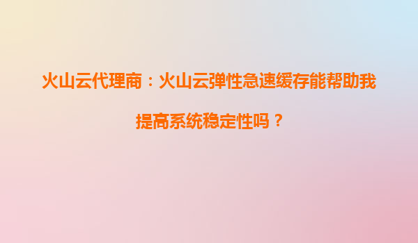 2025-09-20火山云彈性急速緩存如何提升系統穩定性?代理商詳解核心優勢 一、理解標題關鍵詞:系統穩定性與火山云解決方案的關系 標題"火山云彈性急速緩存能幫助我提高系統穩定性嗎?"聚焦三個關鍵點:首先是技術產品——...