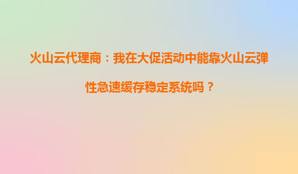 2025-09-18火山云代理商:大促活動中如何依靠彈性急速緩存穩定系統? 在電商、游戲、金融等行業的大促活動中,系統穩定性往往是決定成敗的關鍵。火山引擎的火山云彈性急速緩存(Redis版)憑借其高性能、高可靠性和靈活擴展...