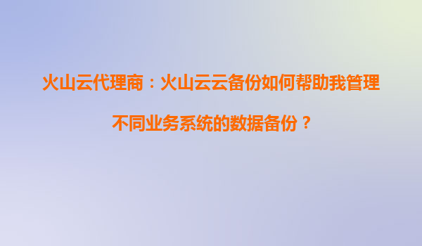 2025-09-18火山云代理商:火山云云備份與第三方應用集成備份管理詳解 一、火山云云備份的核心優勢 火山引擎作為字節跳動旗下的云計算服務平臺,其云備份服務(火山云云備份)憑借以下核心優勢成為...