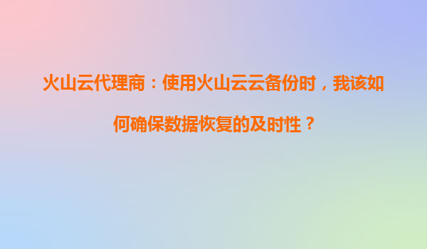 2025-09-18火山云代理商指南:如何確保使用火山云備份時的數據恢復及時性 一、理解火山云備份的及時性挑戰 在數字化轉型浪潮中,數據已成為企業核心資產。但硬件故障、人為誤操作、網絡攻擊等風險時刻威脅數據安...