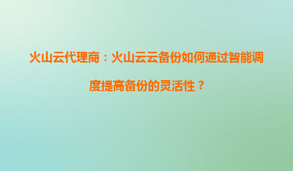 2025-09-17火山云代理商:火山云云備份如何通過智能調度提高備份的靈活性? 一、智能調度的核心價值與火山云備份場景 智能調度技術是云計算時代資源優化的關鍵手段,而火山引擎云備份通過在數據傳輸、存儲...
