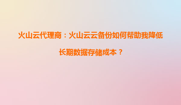 2025-09-17火山云代理商:火山云云備份如何幫助您降低長期數據存儲成本? 引言:數據存儲的成本挑戰 在數字化時代,企業數據量呈現爆發式增長,長期數據存儲的成本壓力日益凸顯。傳統存儲方案如本...