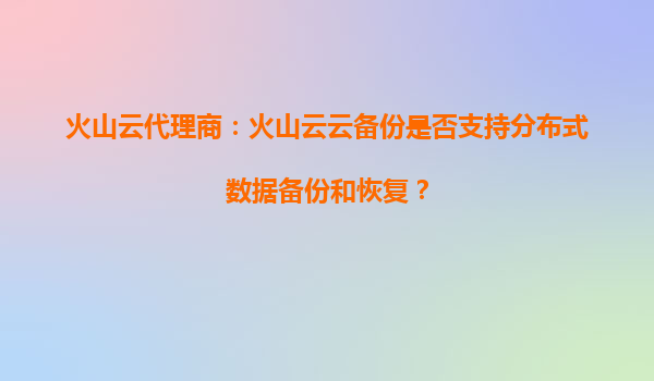 2025-09-17火山云代理商:火山云云備份如何助力企業實現分布式數據備份與恢復? 一、分布式數據備份的需求背景 在數字化時代,數據已成為企業的核心資產。隨著業務規模的...