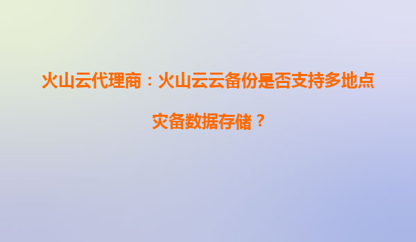 2025-09-17火山云代理商:火山云云備份是否支持多地點災備數據存儲? 引言:數據災備的核心需求與挑戰 在數字化轉型加速的今天,企業數據的可靠性與業務連續性成為關鍵訴求。多地點災備(Multi-SiteDisasterRecovery)通過...