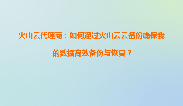 2025-09-17火山云云備份:數據高效備份與恢復的最佳實踐 一、為什么選擇火山云云備份? 在數字化轉型浪潮中,數據已成為企業核心資產。火山云云備份服務憑借其強大的技術實力和完善的基礎設施,為用戶提供安全、高效、可...