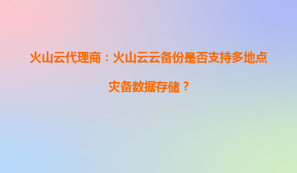 火山云代理商:火山云云備份是否支持多地點災備數據存儲? 引言:數據災備的核心需求與挑戰 在數字化轉型加速的今天,企業數據的可靠性與業務連續性成為關鍵訴求。多地點災備(Multi-SiteDisasterRecovery)通過...