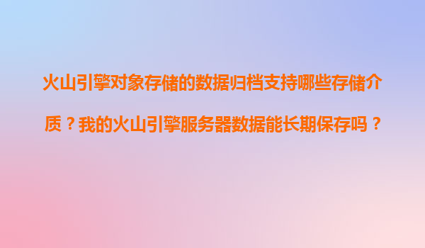 2025-11-21火山引擎對(duì)象存儲(chǔ)的數(shù)據(jù)歸檔支持與長(zhǎng)期保存方案解析 一、火山引擎對(duì)象存儲(chǔ)的歸檔存儲(chǔ)介質(zhì)支持 火山引擎對(duì)象存儲(chǔ)(TOS)提供多層次的存儲(chǔ)方案,針對(duì)不同訪問頻率和成本需求的數(shù)據(jù),支持以下歸...