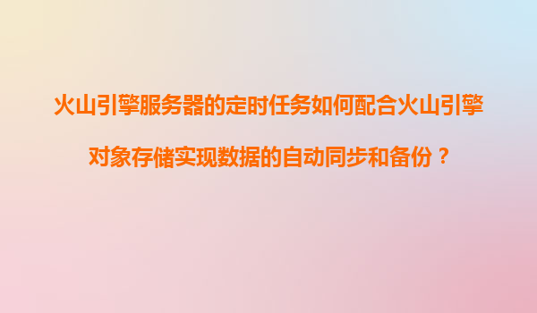 2025-11-21火山引擎服務(wù)器定時(shí)任務(wù)與對(duì)象存儲(chǔ)實(shí)現(xiàn)數(shù)據(jù)自動(dòng)同步備份方案 一、方案概述 在數(shù)字化時(shí)代,數(shù)據(jù)是企業(yè)最重要的資產(chǎn)之一?;鹕揭嫣峁┑脑品?wù)器(ECS)結(jié)合對(duì)象存儲(chǔ)(TOS)服務(wù),通過定時(shí)任務(wù)(Cro...