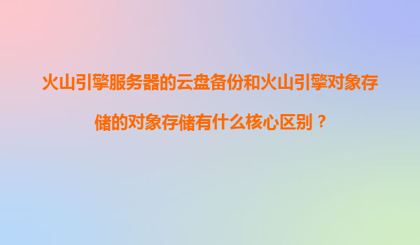 2025-11-20火山引擎云盤備份與對(duì)象存儲(chǔ)的核心區(qū)別解析 一、概述差異 火山引擎提供的云盤備份和對(duì)象存儲(chǔ)(TOS)雖然都具備數(shù)據(jù)存儲(chǔ)能力,但設(shè)計(jì)目標(biāo)和技術(shù)架構(gòu)存在本質(zhì)區(qū)別: 云盤備份:面...