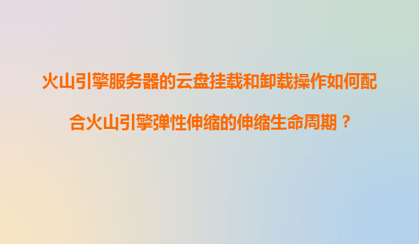 2025-11-20火山引擎服務(wù)器云盤掛載與卸載如何配合彈性伸縮生命周期 一、火山引擎彈性伸縮與云盤的核心能力 火山引擎的彈性伸縮(AutoScaling)服務(wù)能夠根據(jù)業(yè)務(wù)負(fù)載動(dòng)態(tài)調(diào)整計(jì)算資源規(guī)模,而云盤...