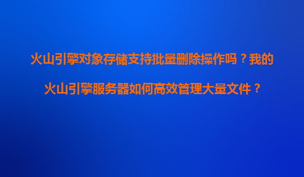 2025-11-20火山引擎對(duì)象存儲(chǔ)的批量刪除操作及高效文件管理策略 火山引擎對(duì)象存儲(chǔ)是否支持批量刪除? 火山引擎對(duì)象存儲(chǔ)(TOS,ToutiaoObjectStorage)作為字節(jié)跳動(dòng)旗下的云存儲(chǔ)服務(wù),提供了完善的批量...