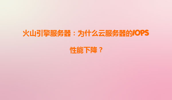2025-04-12火山引擎服務器:為什么云服務器的IOPS性能下降? 一、IOPS性能的重要性與常見問題 在云計算領域,IOPS(每秒輸入輸出操作次數)是衡量存儲性能的核心指標,直接影響數據庫、實時分析和高并發(fā)業(yè)務...