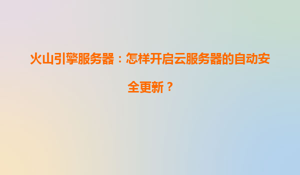2025-04-11火山引擎服務(wù)器:如何開啟云服務(wù)器的自動安全更新? 一、為什么需要自動安全更新? 在云計算時代,服務(wù)器的安全性直接影響業(yè)務(wù)連續(xù)性。黑客攻擊、系統(tǒng)漏洞和軟件缺陷可能導(dǎo)致數(shù)據(jù)泄露或服務(wù)中...