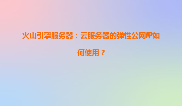 2025-04-10火山引擎彈性公網(wǎng)IP:靈活連接云上資源的利器 一、彈性公網(wǎng)IP的核心價值 在云計算場景中,彈性公網(wǎng)IP(ElasticIP)是連接云服務器與互聯(lián)網(wǎng)的關(guān)鍵紐帶。火山引擎通過創(chuàng)新的彈性公網(wǎng)IP服務,為企業(yè)提供...