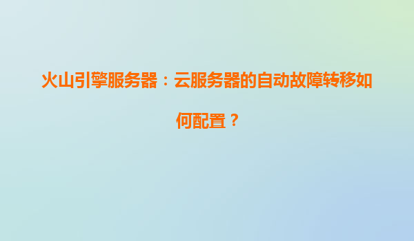 2025-04-08火山引擎云服務(wù)器自動(dòng)故障轉(zhuǎn)移配置指南 一、什么是自動(dòng)故障轉(zhuǎn)移? 自動(dòng)故障轉(zhuǎn)移(AutoFailover)是云計(jì)算中保障業(yè)務(wù)連續(xù)性的核心技術(shù),通過實(shí)時(shí)監(jiān)控服務(wù)器狀態(tài),當(dāng)檢測(cè)到硬件故障、網(wǎng)絡(luò)中斷...