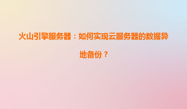 2025-04-08火山引擎服務(wù)器:如何實(shí)現(xiàn)云服務(wù)器的數(shù)據(jù)異地備份? 一、數(shù)據(jù)異地備份的核心價(jià)值 在數(shù)字化時(shí)代,數(shù)據(jù)是企業(yè)最核心的資產(chǎn)之一。通過異地備份技術(shù),企業(yè)可將數(shù)據(jù)同步存儲(chǔ)至地理位置分離的多個(gè)數(shù)...