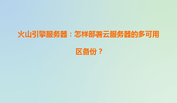 2025-04-08火山引擎服務(wù)器:如何部署云服務(wù)器的多可用區(qū)備份? 一、多可用區(qū)備份的重要性 在云計(jì)算場(chǎng)景中,多可用區(qū)(Multi-AZ)備份是保障業(yè)務(wù)連續(xù)性的核心策略之一。通過(guò)將云服務(wù)器實(shí)例和數(shù)據(jù)分布在...