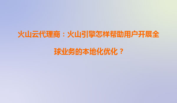2025-03-29火山引擎與代理商如何助力企業(yè)全球化業(yè)務(wù)本地化優(yōu)化? 一、全球化業(yè)務(wù)面臨的本地化挑戰(zhàn) 企業(yè)在拓展海外市場(chǎng)時(shí),常面臨語(yǔ)言適配、文化差異、合規(guī)風(fēng)險(xiǎn)、網(wǎng)絡(luò)延遲、本地化運(yùn)營(yíng)五大核心痛點(diǎn)。傳統(tǒng)解決方案...