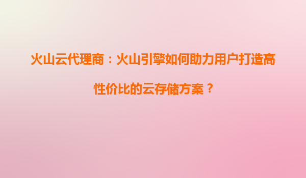 2025-03-29火山引擎與代理商合力打造高性價(jià)比云存儲(chǔ)方案 一、火山引擎的核心優(yōu)勢(shì) 1.全場(chǎng)景覆蓋的云存儲(chǔ)產(chǎn)品矩陣 火山引擎提供對(duì)象存儲(chǔ)(TOS)、文件存儲(chǔ)(NAS)、塊存儲(chǔ)(EBS)等多類型服務(wù),...