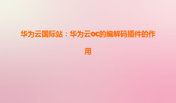 華為云國際站:華為云OC的編解碼插件的作用解析