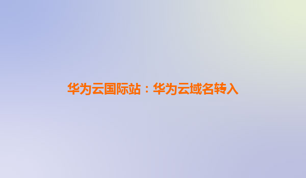 華為云國際站:華為云域名轉(zhuǎn)入優(yōu)勢解析