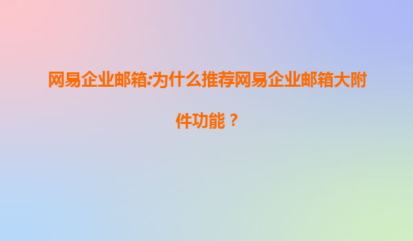 2025-08-10網(wǎng)易企業(yè)郵箱:為什么推薦網(wǎng)易企業(yè)郵箱大附件功能? 在當(dāng)今快節(jié)奏的商業(yè)環(huán)境中,高效、穩(wěn)定的企業(yè)郵箱已成為企業(yè)日常運(yùn)營(yíng)不可或缺的工具。作為國(guó)內(nèi)領(lǐng)先的企業(yè)郵箱服務(wù)提供商,網(wǎng)易企業(yè)郵箱憑借其卓越...
