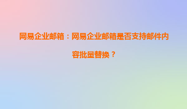 2025-08-09網(wǎng)易企業(yè)郵箱:網(wǎng)易企業(yè)郵箱能否限制郵件發(fā)送對象? 一、網(wǎng)易企業(yè)郵箱的核心優(yōu)勢 網(wǎng)易企業(yè)郵箱作為國內(nèi)領(lǐng)先的企業(yè)級郵件服務(wù)提供商,憑借其穩(wěn)定、安全、高效的特點,贏得了眾多企業(yè)的信賴。其核心...