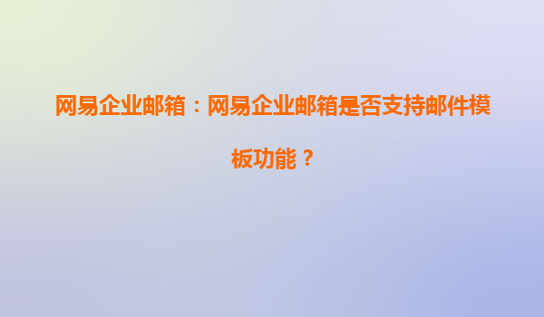 4008-020-360 網(wǎng)易企業(yè)郵箱:深度解析郵件模板功能及其應(yīng)用價(jià)值 一、網(wǎng)易企業(yè)郵箱是否支持郵件模板功能? 是的,網(wǎng)易企業(yè)郵箱全面支持郵件模板功能,并為企業(yè)用戶提供了高度定制化的模板管理工具。該功能允許用戶提前預(yù)...