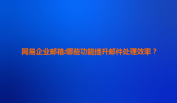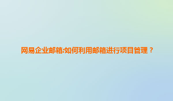 2025-07-11網易企業郵箱:如何利用郵箱進行項目管理? 在當今快節奏的商業環境中,高效的項目管理是企業成功的關鍵因素之一。而網易企業郵箱憑借其強大的功能和穩定的性能,成為了眾多企業進行項目管理的得力助手。本文...