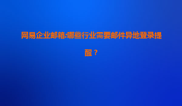 哪些行業需要郵件異地登錄提醒? 在當今數字化辦公環境中,企業郵箱作為重要溝通工具,承載著大量敏感信息。異地登錄提醒功能可有效防范賬號被盜或異常訪問的風險。網易企業郵箱憑借其安全穩定的服務,為各行業...