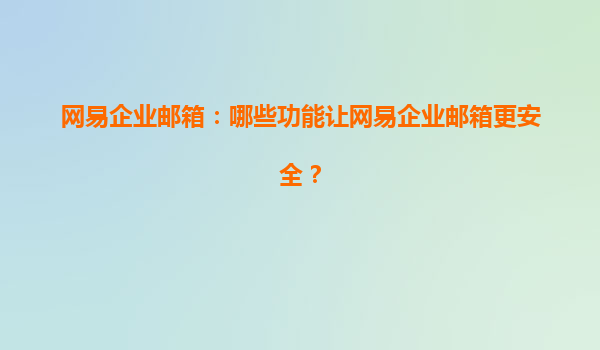 2025-07-06網易企業郵箱:哪些功能讓網易企業郵箱更安全? 在當今數字化時代,企業郵箱不僅是溝通工具,更是企業信息安全的重要防線。網易企業郵箱憑借其強大的安全防護能力,成為眾多企業的首選。那么,網易企業郵箱究竟...