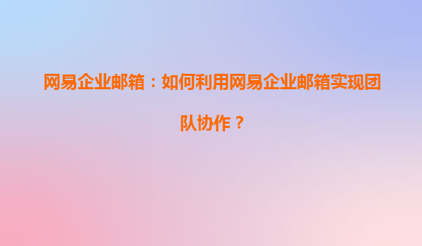 2025-07-06網易企業郵箱:如何利用網易企業郵箱實現團隊協作? 在當今快節奏的商業環境中,高效的團隊協作是企業成功的關鍵。網易企業郵箱作為國內領先的企業郵箱服務提供商,不僅提供穩定可靠的郵件服務,還整合了多種協作...