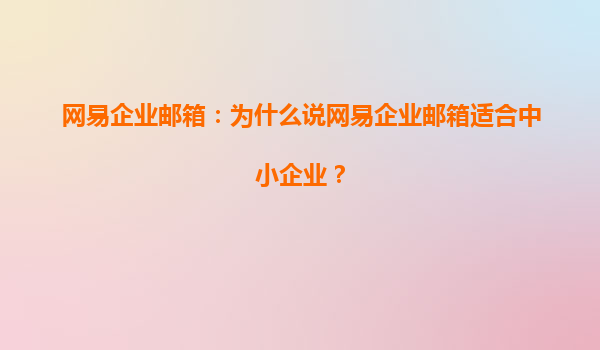2025-07-06網易企業郵箱:為什么說網易企業郵箱適合中小企業? 引言 在數字化時代,企業郵箱不僅是溝通工具,更是企業形象和專業度的體現。對于中小企業而言,選擇一款穩...