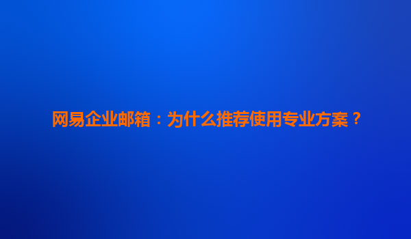 2025-07-05網易企業郵箱:為什么推薦使用專業方案? 一、企業郵箱的重要性 在數字化辦公時代,企業郵箱不僅是溝通工具,更是企業形象、數據安全和高效協作的核心載體。據統計,超過90%的商務溝通仍...