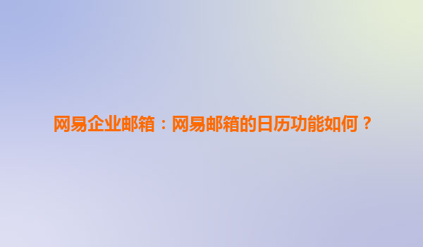 網易企業郵箱:網易郵箱的日歷功能如何? 一、網易企業郵箱的日歷功能概述 網易企業郵箱作為國內領先的企業級郵箱服務提供商,其日歷功能是其核心功能之一。日歷功能不僅可以幫助企業員工高效管理時間,還...