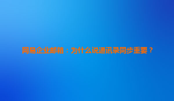 2025-07-05網易企業郵箱:為什么說通訊錄同步重要? 在現代企業管理中,高效的溝通是推動業務發展的關鍵因素之一。而企業郵箱作為企業內部和外部溝通的重要工具,其功能的完善與否直接影響到工作效率。網易企業...