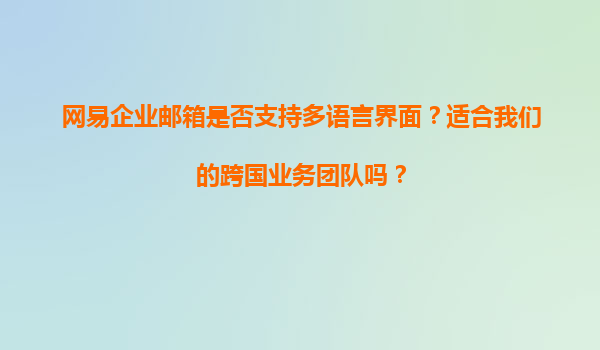 2025-11-05網(wǎng)易企業(yè)郵箱是否支持多語言界面?適合跨國業(yè)務(wù)團(tuán)隊(duì)嗎? 引言 在全球化背景下,企業(yè)跨國業(yè)務(wù)日益頻繁,高效的溝通工具成為團(tuán)隊(duì)協(xié)作的核心需求。作為國內(nèi)領(lǐng)先的...