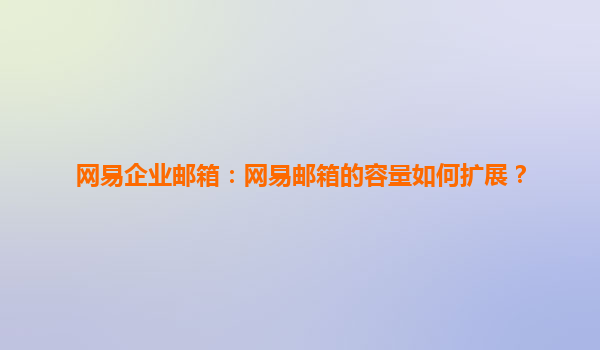 網易企業郵箱:網易郵箱的容量如何擴展? 在企業日常運營中,電子郵件是不可或缺的溝通工具之一。而隨著業務的發展,郵件數量不斷增多,郵箱容量成為了企業不得不面對的問題。網易企業郵箱作為市場上廣受歡迎的...