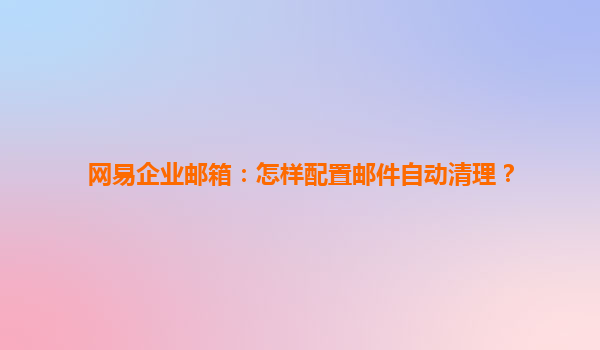 2025-07-03網易企業郵箱:怎樣配置郵件自動清理? 在企業日常運營中,郵件通信是不可或缺的工具。隨著時間推移,郵件數量不斷增加,可能導致郵箱容量不足、檢索效率低下等問題。網易企業郵箱作為國內領先的企業郵箱服務提供...