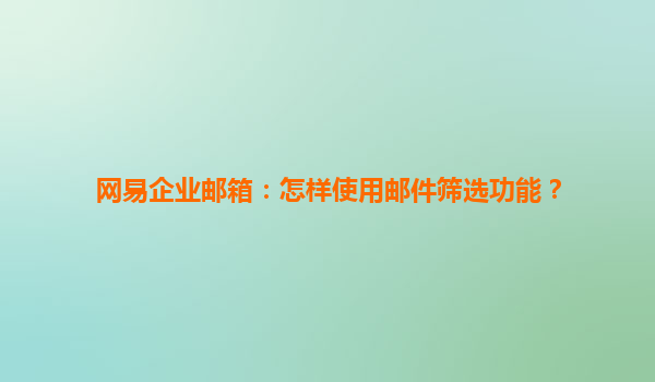 2025-07-03網易企業郵箱:郵件篩選功能使用指南 一、網易企業郵箱的核心優勢 在高效協同的辦公環境中,網易企業郵箱憑借以下核心優勢成為眾多企業的首選: 軍工級安全防護:采用SSL加密傳輸,多層反垃圾引擎攔截...