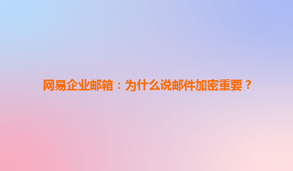 2025-07-03網易企業郵箱:為什么說郵件加密重要? 一、郵件加密的緊迫性:企業信息安全的核心防線 在數字化辦公時代,電子郵件已成為企業內外溝通的核心工具。據《2023年全球數據泄露報告》顯示,23%的數據...